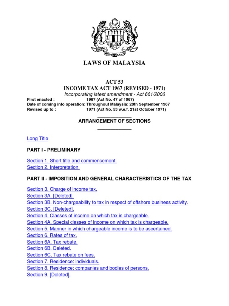 Malaysia Income Tax Act 1967 With Complete Regulations And Rules 7th Edition Malaysia Taxation