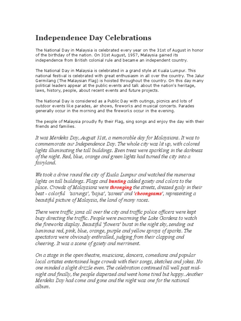 Malaysia Independence Day Essay In English