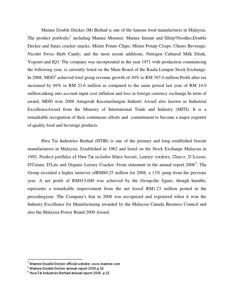 Im Assignment Mamee Double Decker Berhad 1 0 Introduction Mamee Double Decker Berhad Is A Malaysian Based Company It Is Focus In The Manufacturing Course Hero