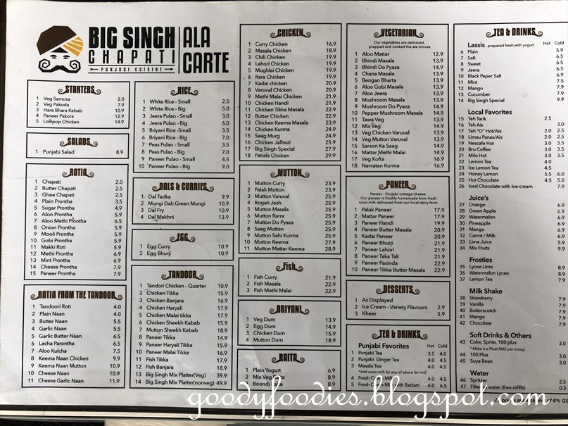 Big Sing S Ala Carte Menu Picture Of Big Singh Chapati Subang Jaya Tripadvisor
