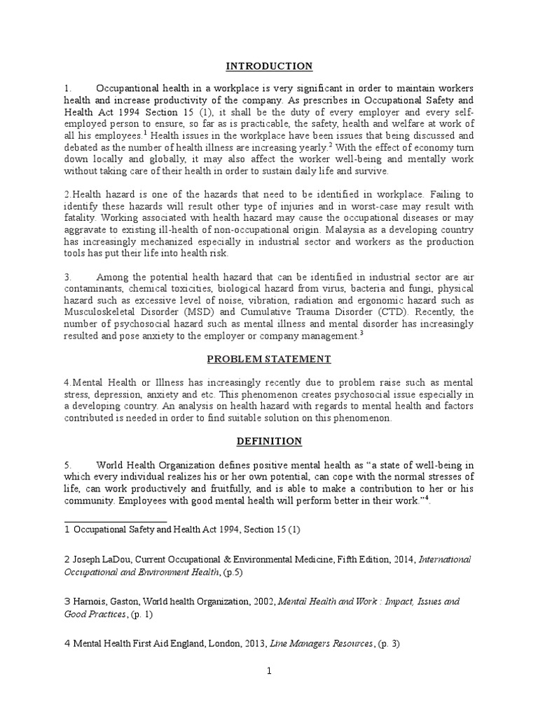 Assignment 2 Mental Health Occupational Safety And Health Mental Health