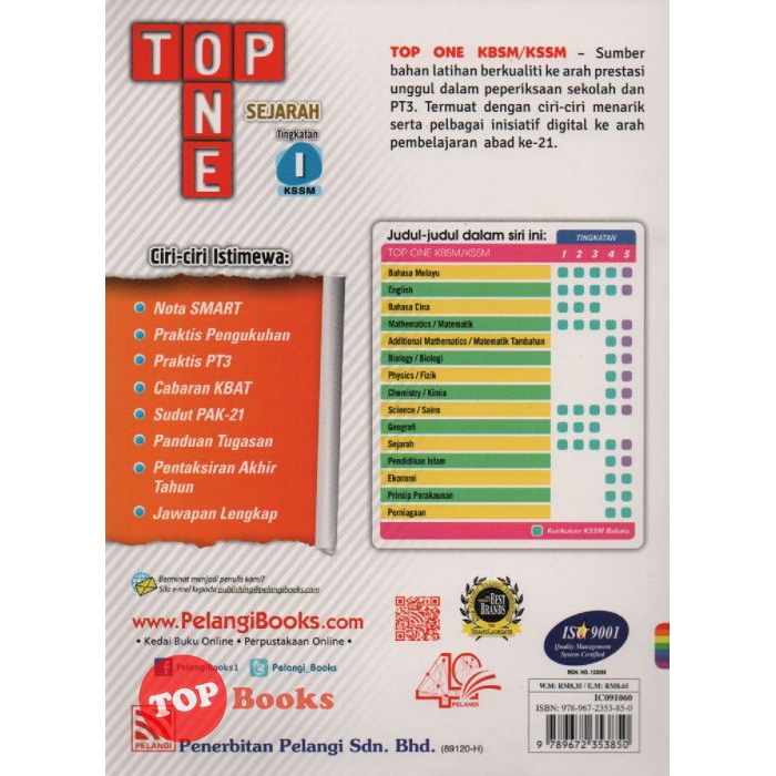 Topbooks Pelangi Top One Kssm Sejarah Tingkatan 1 2020 Shopee Malaysia