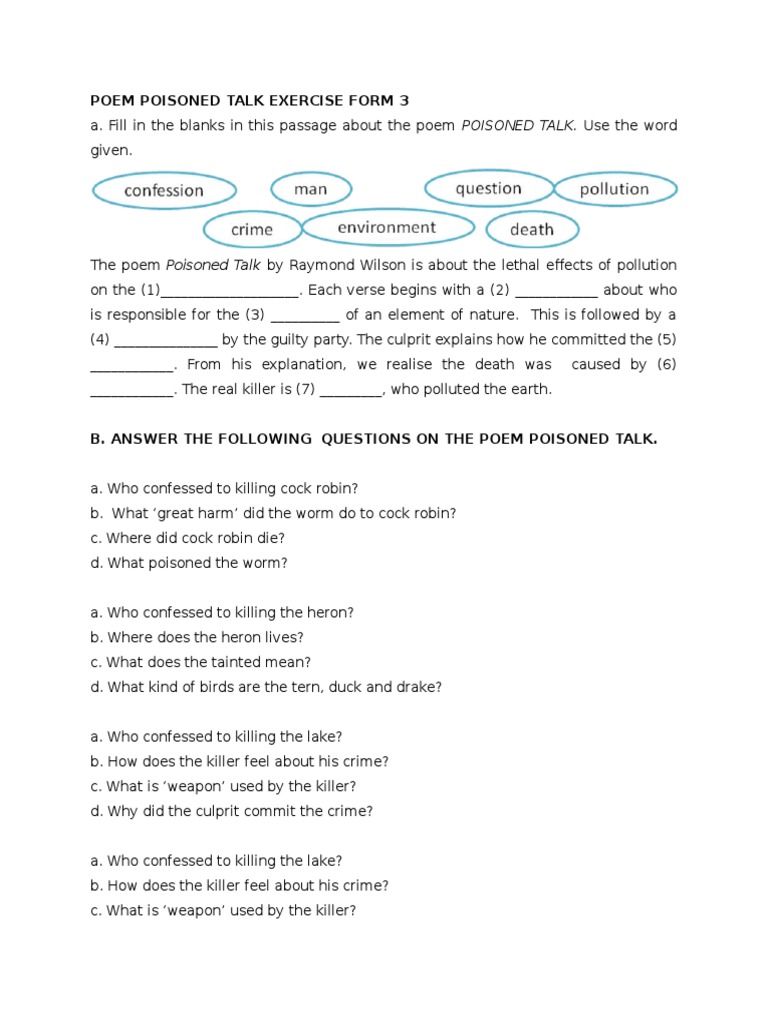 Poem Poisoned Talk Exercise Form 3
