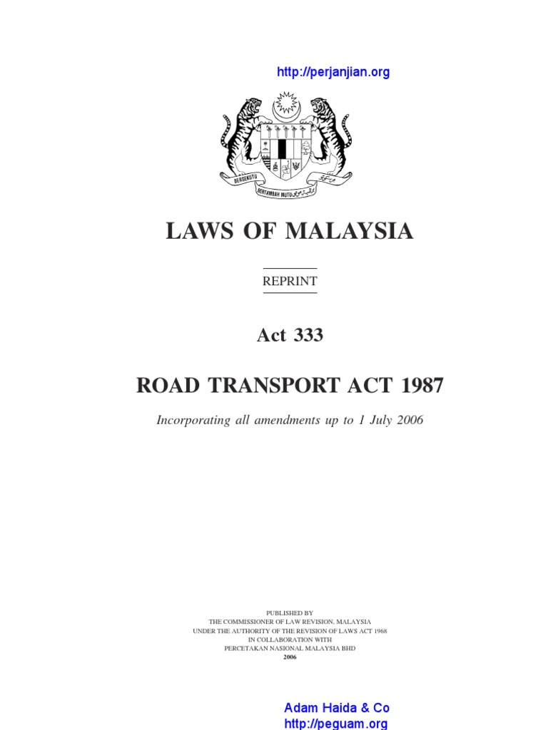 Road Transport Laws Of Malaysia Reprint Act 333 Road Transport Act Pdf Free Download