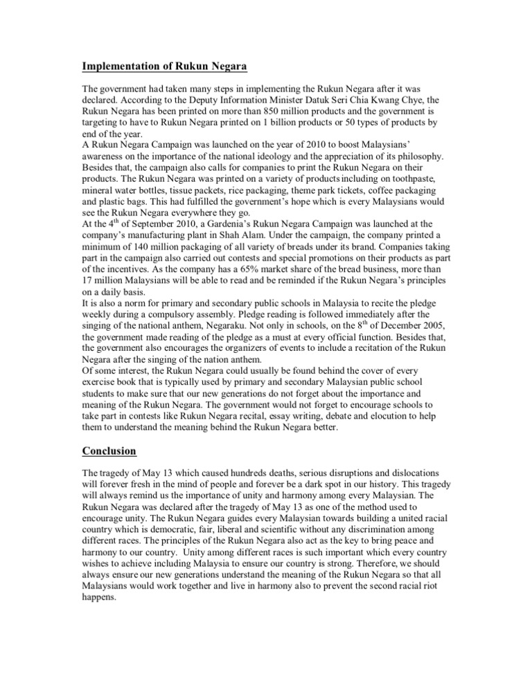 Implementation Of Rukun Negara Malaysia