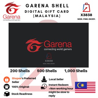 Garena Shell Malaysia Digital Topup Top Up Gift Recharge Reload Card For 100 500 725 Shells Shopee Malaysia