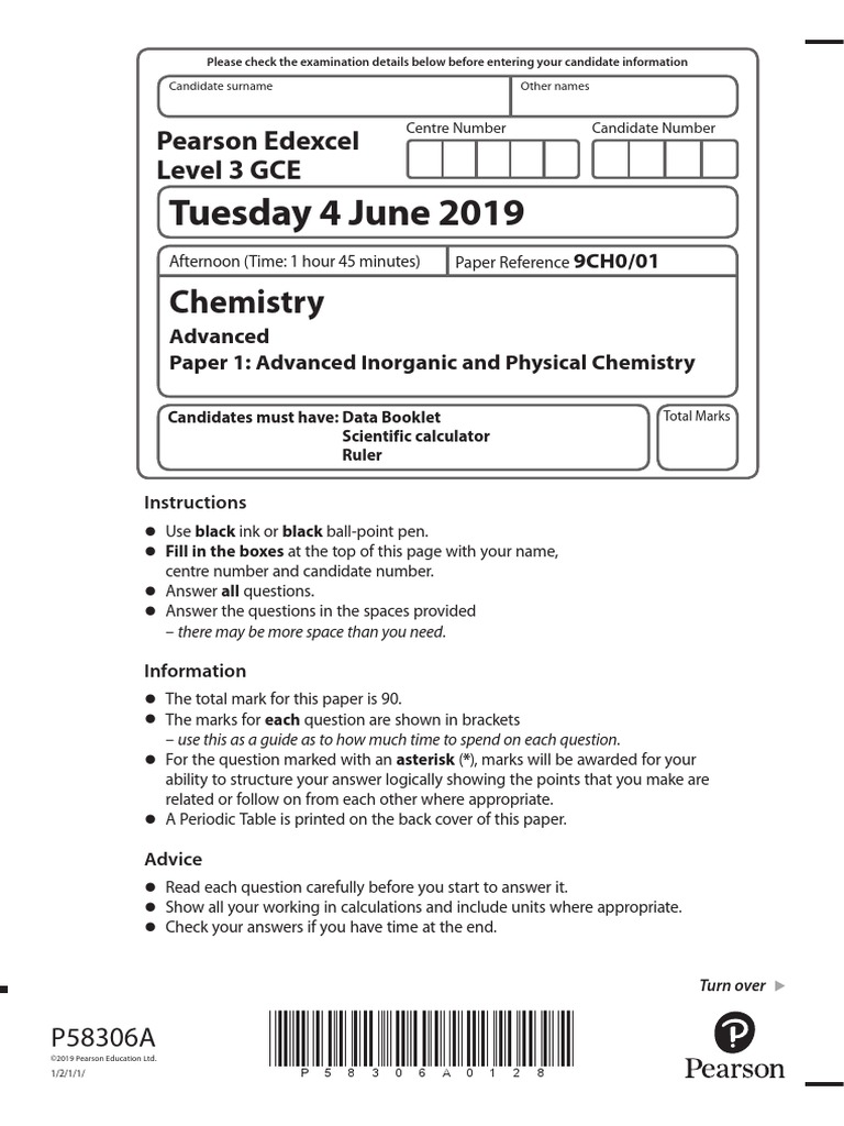 Tuesday 4 June 2019 Chemistry Sodium Hydroxide Chlorine