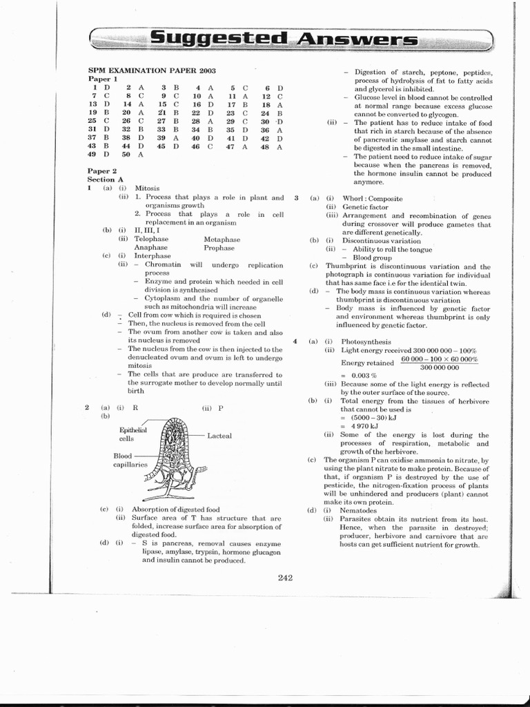 Spm 2003 2004 Answers Cellular Respiration Luteinizing Hormone