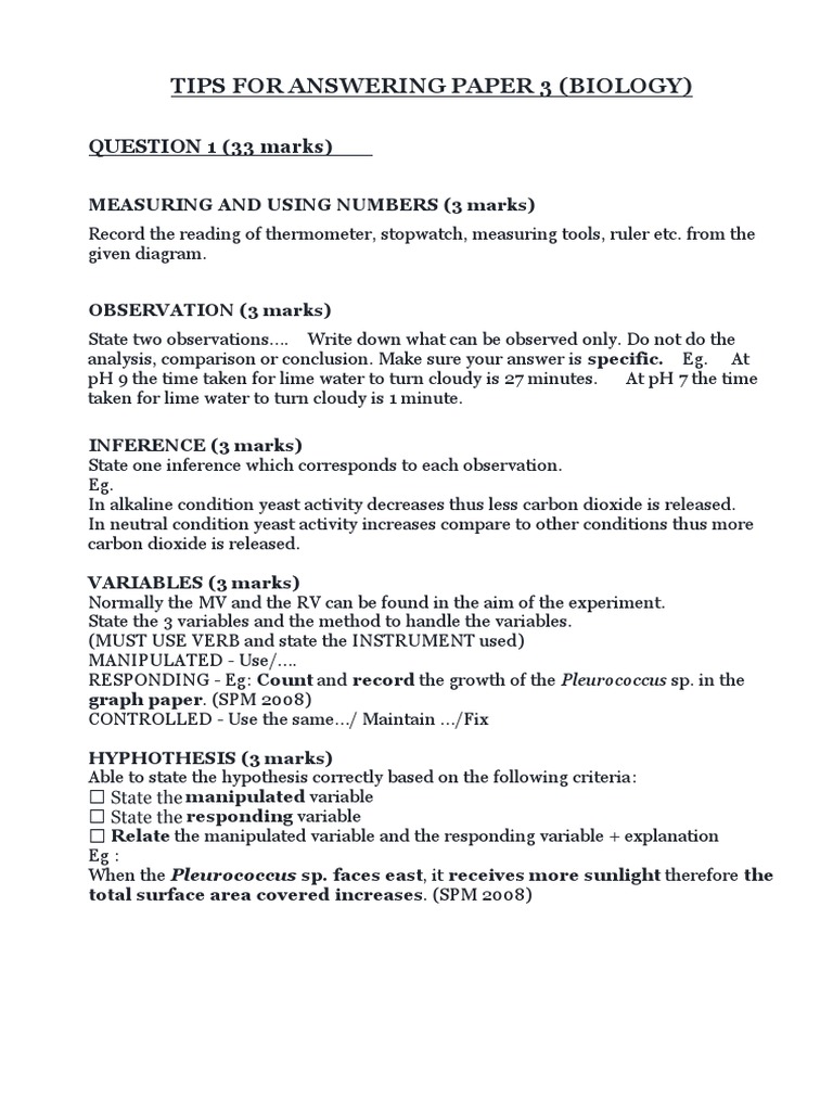 Tips For Answering Paper 3 Experiment Hypothesis