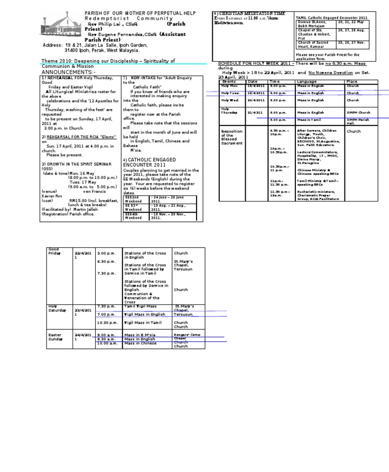 Parish Bulletin City Parish Penang