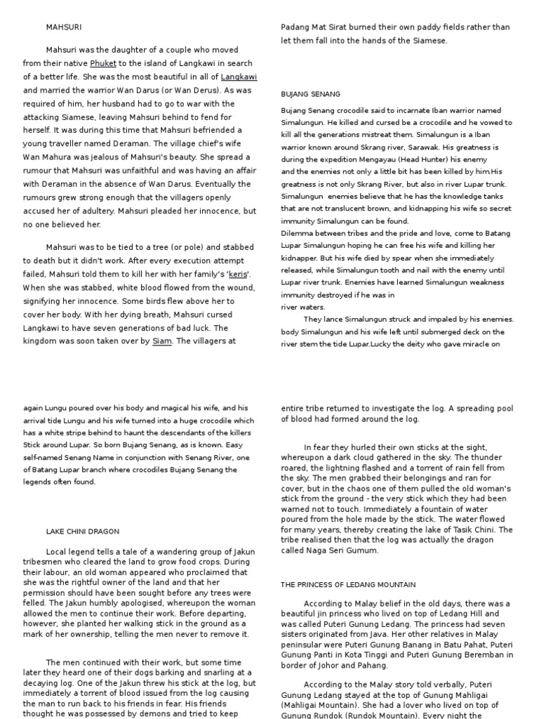 Listening Text On The Legend Of Mahsuri Docx The Legend Of Mahsuri Once Upon A Time There Was A Beautiful Woman Named Mahsuri Who Lived In Langkawi Course Hero