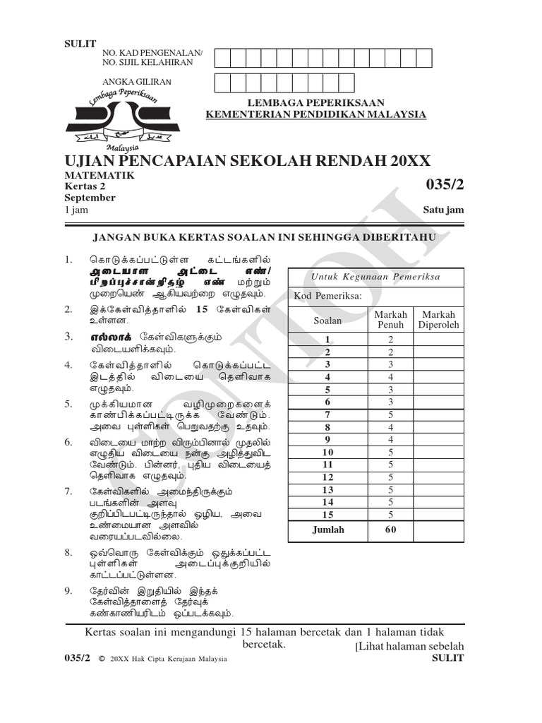 Kertas Ujian Pencapaian Sekolah Rendah Upsr 2019 Sk