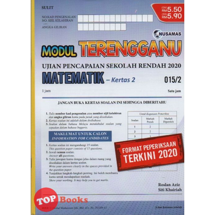 Topbooks Nusamas Modul Terengganu Upsr Matematik Dwi Kertas 2 2020 Shopee Malaysia