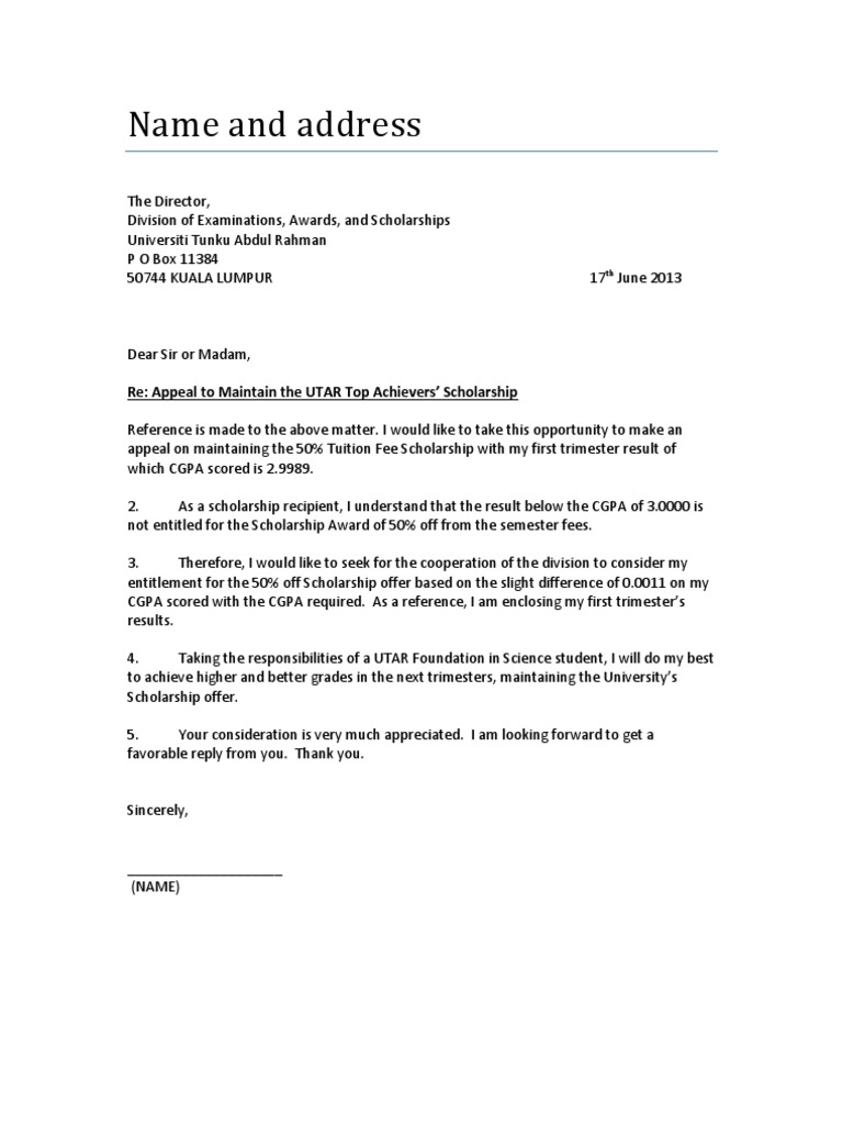 Appeal Letter Scholarship